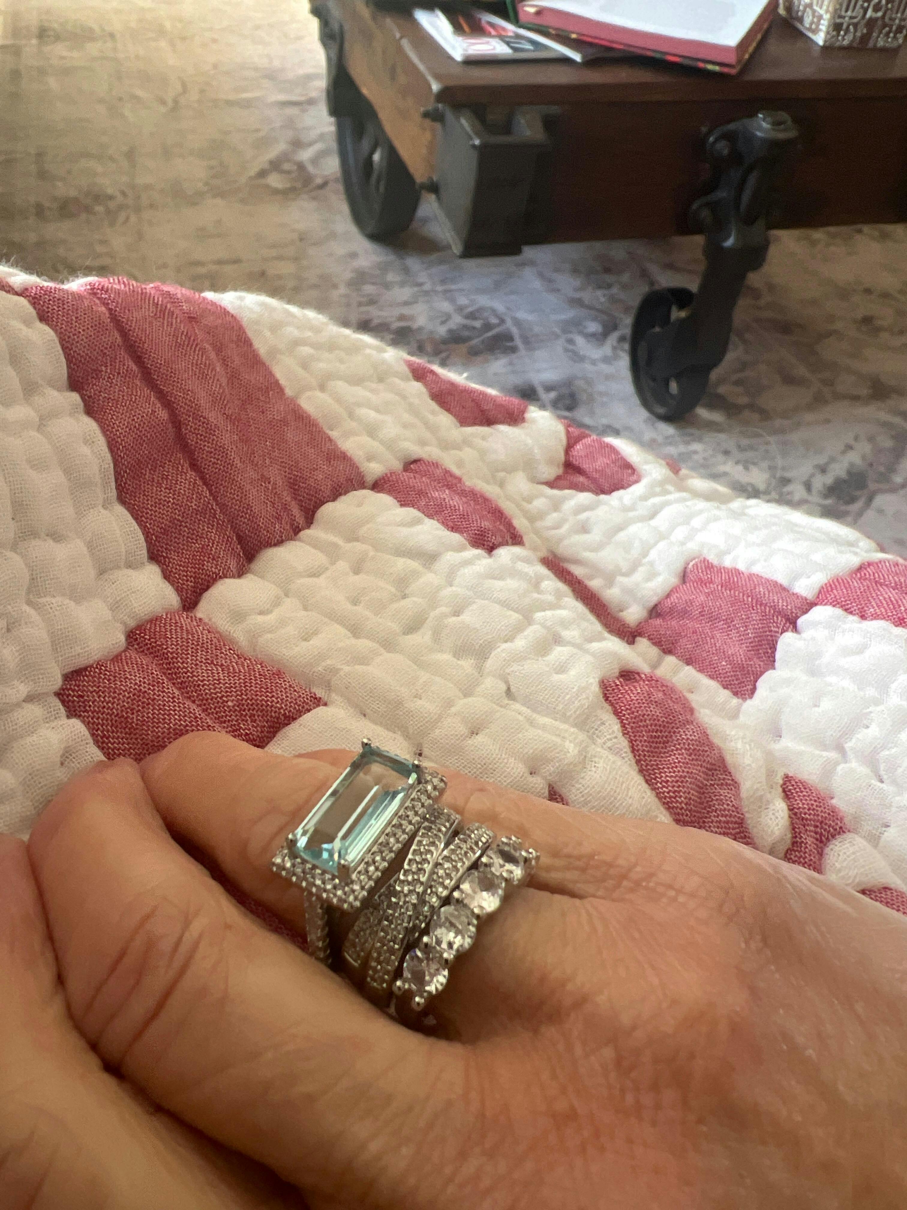 Even though I think the actual photo is probably a stack of rings with real stones, these rings are really pretty and sparkly, and they will do the trick for a more reasonable price! I plan to keep them in a separate bag and take care of them to keep them from tarnishing. Can't wait to wear!