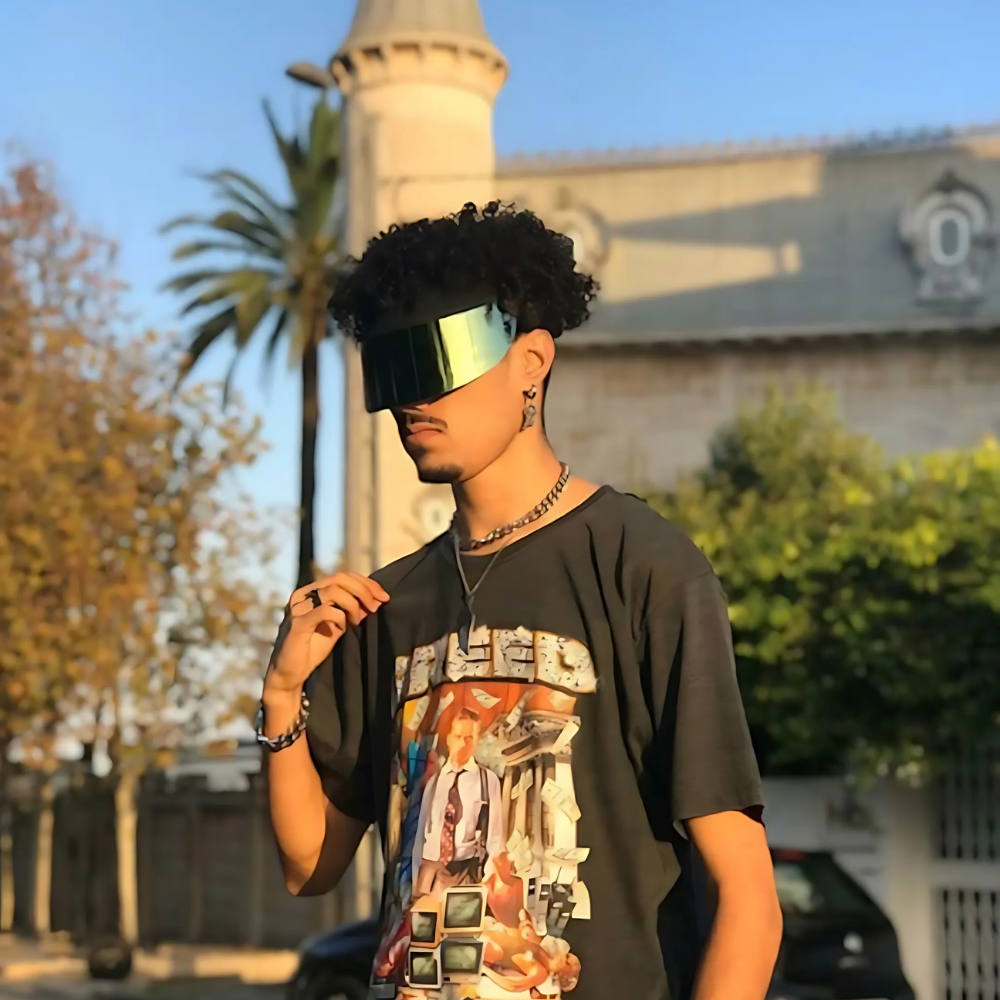 The BLACK PAPARAZZI VISOR™ 2.0 features the original SAINT CHIC–designed lens shape with a bold, iridescent rainbow finish that stands out in any setting.